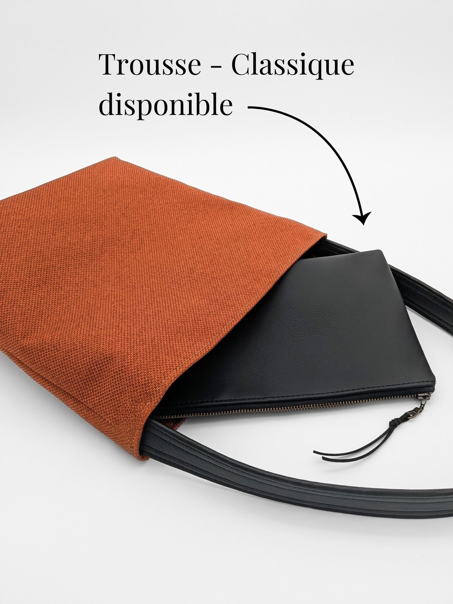 Si vous désirez ajouter un séparateur de sac, notre Trousse - Classique et nos Trousses Fortes ont le format parfait pour ce sac.